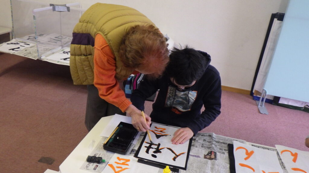 書き初めの指導をしていただきました📜🖌️🐴